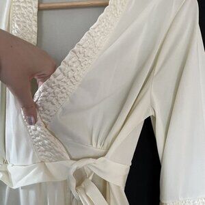 vintage valmode baby yellow robe 3/4 sleeves lingerie women's size small belted