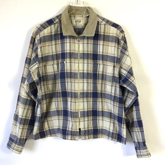 vintage womens jacket shacket 18 20 XL tan blue plaid full zip cotton cropped