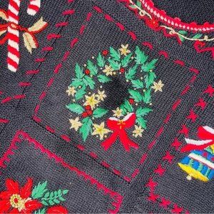 vintage work in progress christmas sweater embroidered sweater sequin s (6-8) some loose threads . Ugly Christmas