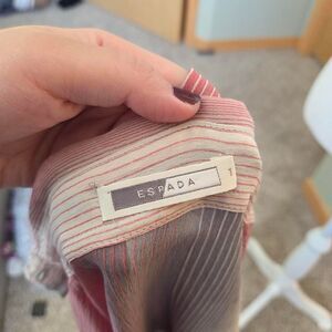 vintage y2k Espada semi sheer chiffon pink and white striped collared blouse #stripedtop