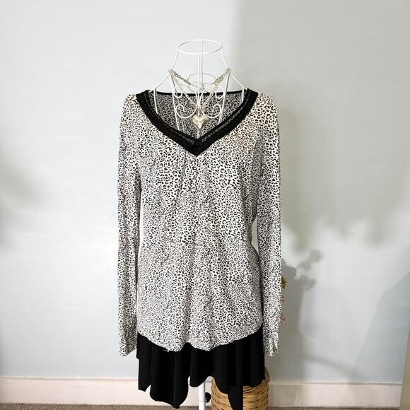 vintage y2k cheetah print lace lined v- neck tight layering long sleeve top