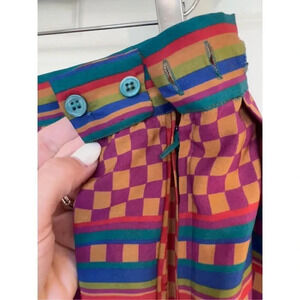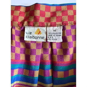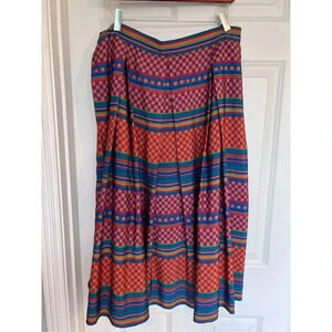 Liz Claiborne stunning vintage red and blue striped and square Art Deco fit and flair midi skirt vintage size 14 but modern size S-M with button waist. Please see the measurements in the pictures. In excellent vintage condition and perfect for fall or winter