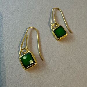 These elegant earrings feature a stunning green stone set in a sleek gold design. Perfect for adding a touch of sophistication to any outfit.