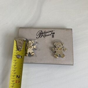 vintahe MJ silver tone clip on earrings teddy bear with goldtone bow. Condition is "Pre-owned"