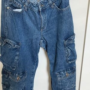 size 7 garage cargo jean pants low rise #garage #cargo #viralcargojeans #cargojeans #lowrise #darkwash #darkwashcargopants