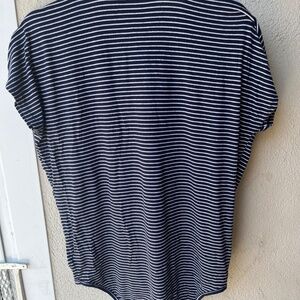 navy blue and white stripe, v-neck, dolman sleeve loose fitting tee, super soft fabric, daywear, beach, stripe, from Nordstrom, label cut out bc it was uncomfortable, great for summer, fall, winter, spring, soft fabric. tee shirt