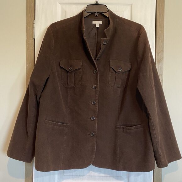 vntg charter club women blazer jacket 100%cotton brown sz 20W office school work