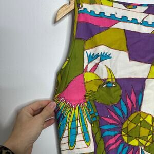 vtg 1960's B. ALTMAN & CO. vivid patterned shift dress summer ART bird women's