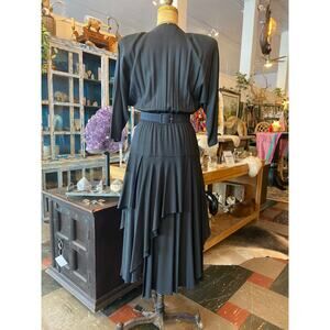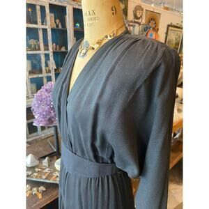 vtg 1980s black rayon dress with batwing sleeves and asymmetrical, 80s does 40s
