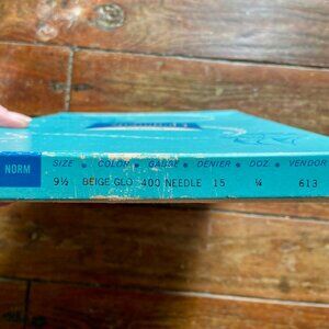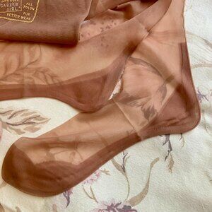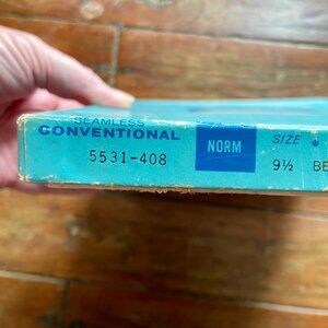 Two pairs of seamed full fashioned 400 needle, 15 denier stockings by Penny's Gaymore Neumode. Reinforced Cuban heel and toe. 100% nylon. Size 9 1/2. Shade - Beige Glo.