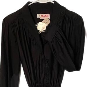 Mary Martin Florida black vintage belted dress 10 pleated ruffles lace witchycore