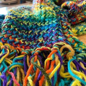 vtg 80s•handknit scarf chunky multicolored