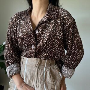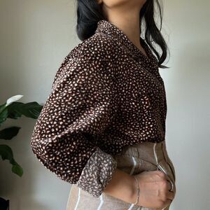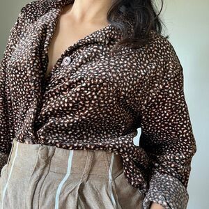 vtg 90s Clio velvet jacket blouse brown black leopard shirt size Large button up