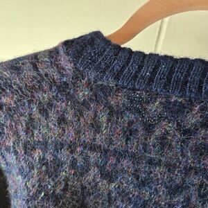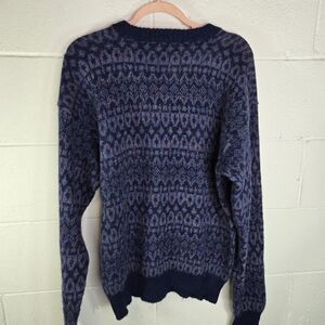 vtg 90s Peruvian Connection Pure Alpaca Blue Jacquard Pattern Crewneck Sweater
