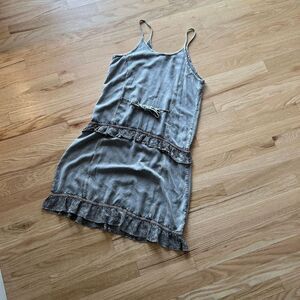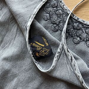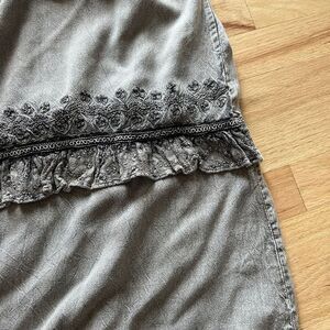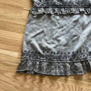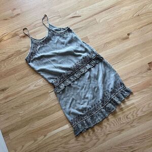 vtg 90s drop waist embroidered ruffle boho dress distressed grey rayon medium