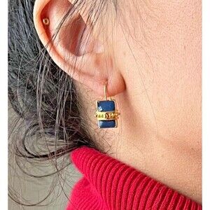 cute blue and gold rectangle pierced drop earrings petite and dainty Great vintage condition, no defects or flaws approximate measurements Width - .5" Length - 1" length of rectangle - 5/8"
