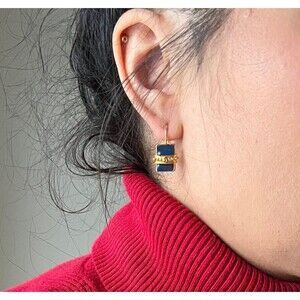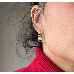 vtg 90s petite blue and gold rectangular small drop earrings glam retro lavish
