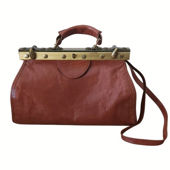 vintage CE.DI 2 Italian leather satchel shoulder crossbody brown Gladstone frame doctor bag purse