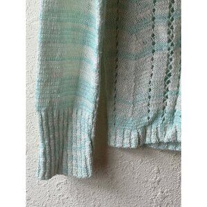 vtg Charming Charlie Womens Mint White Knit long sleeve Sweater Small sheer READ