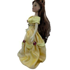 vtg. Disney Princess Belle Beauty and The Best Porcelain Doll 16” w/ stand. Pre owned in good condition with some minor wear to finish including some wear to gloves (fingers poking through material). Does not come with any other accessories or original box. The stand is not original but will be sending with the doll. For more details please study all pictures.