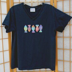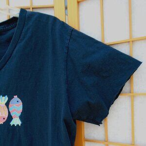 vtg FRESH PRODUCE Adult Medium Colorful Fish T blue/black *sleeves cut shorter*