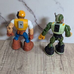 Vintage Rescue Heroes action figures bundle featuring Jack Hammer, the construction expert, and Rocky Canyon, the mountain hero. Perfect for collectors or fans of nostalgic toys.