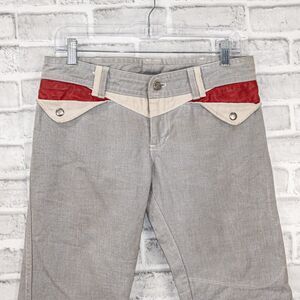 vtg GREY ANT Western Jean Shorts in Gray with Red leather trim size 4 30w