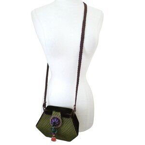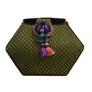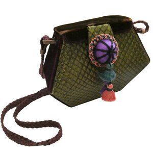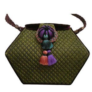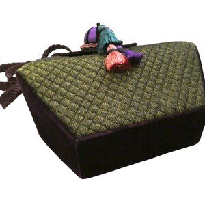 vtg HELENE ANGELI geometric quilted evening bag w tassels Velvet trim