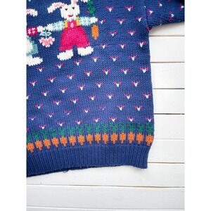 vtg Northern Isles blue bunny rabbit carrot easter sweater
