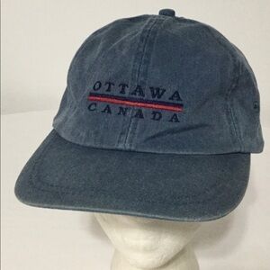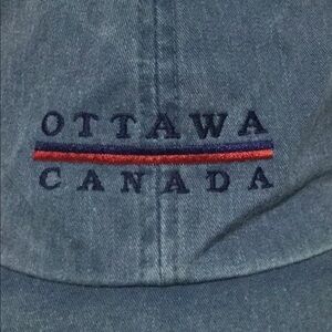 New without tags (old stock) Vintage OTTAWA CANADA Hat with Embroidered Logos Denim material blue in color With Adjustable strap Adult One-size-fits-all Hat/Cap/Ballcap