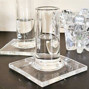 Enhance your table settings with this vintage collection of assorted crystal candle holders. Perfect for weddings or elegant home decor, these votive and taper glass holders create a sophisticated ambiance.
