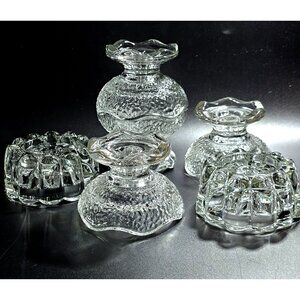 Enhance your table settings with this vintage collection of assorted crystal candle holders. Perfect for weddings or elegant home decor, these votive and taper glass holders create a sophisticated ambiance.