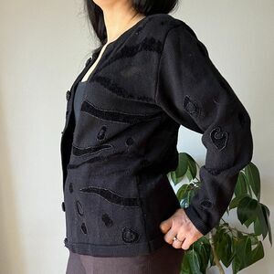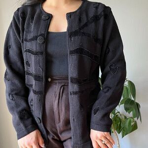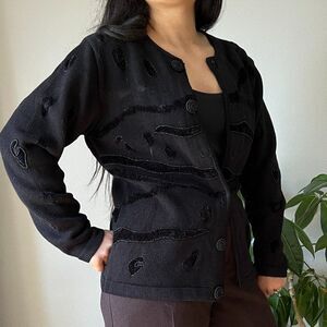 vtg black beaded long sleeve cardigan sweater designer Jack B quick Medium