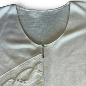 vtg cream cable knit sequin embroidered zip up cardigan italian wool sweater euc