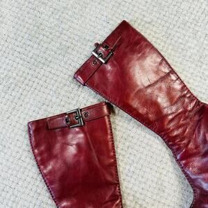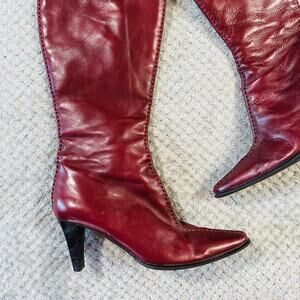 vtg franco sarto y2k cherry red leather pointed toe kitten heel calf high boots L-Parma 6.5