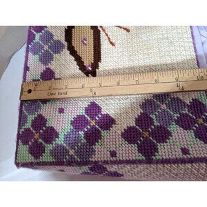 vtg handmade Needlepoint handbag tote butterfly floral lined See condition 14x10