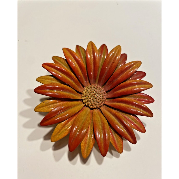 vtg mod retro daisy pin mad men fall burnt orange enamel 1950's