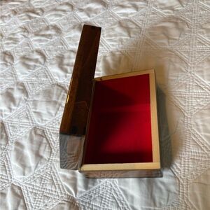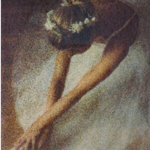 Vinyage Musical jewelry or trinket box featuring an art print on the lid. The artwork itself is a famous photograph titled "The Dancer" (1981) by Bernard Baudet. •