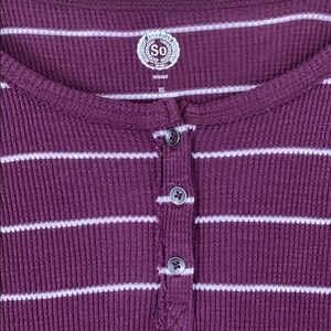 Waffle knit plum and white striped 3/4 button top great for layering fits more like a size small