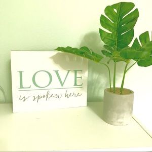 NWT! “love is spoken here” wall decor It can be hung on a wall or stand on its own. Originally $14 from Hobby Lobby. 8 inches by 10 inches.