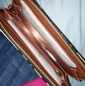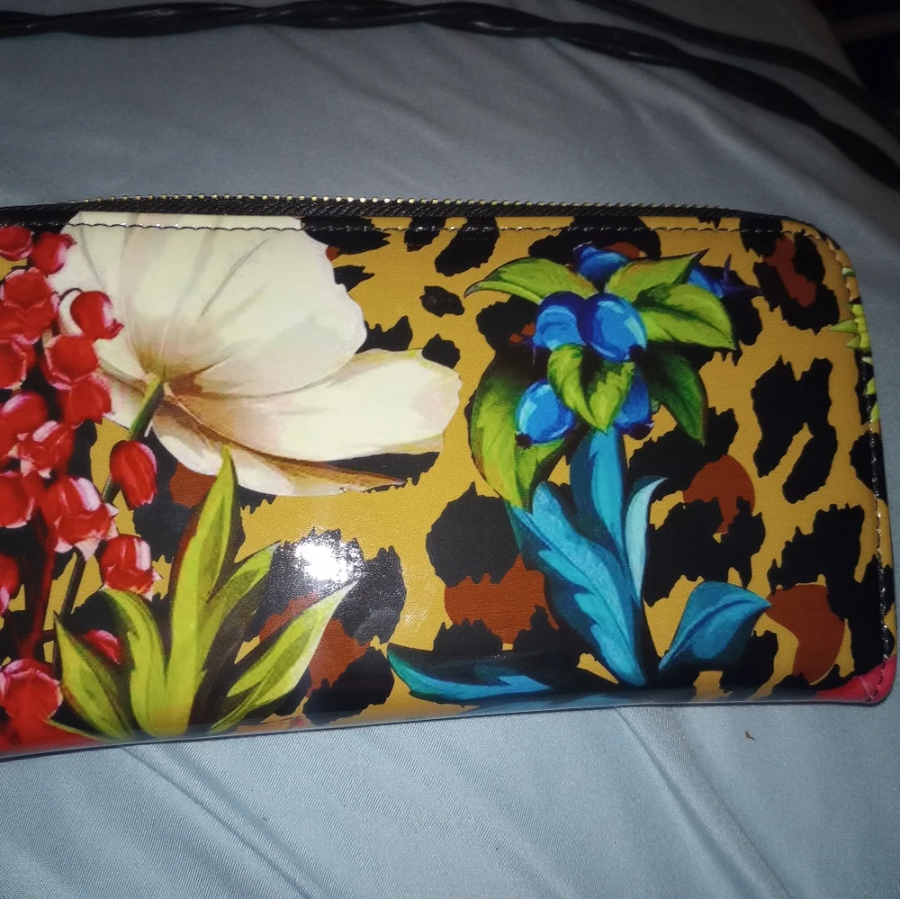 cute patent leather like material. leopard print with flowers. brand new. never used