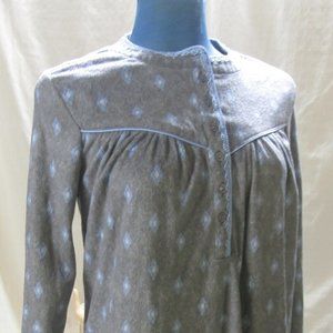 gray and blue warm long nightgown buttons on bust , ready for hot coco nights