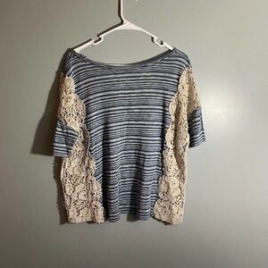 we the Free Striped and Lace Short Sleeve Top Size Medium