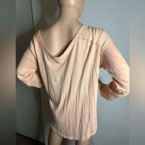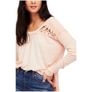 Free People We The Free First Love Peach Linen Blend Lace Up Oversized Long Sleeve Top