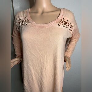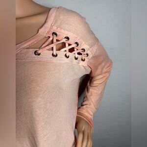 we the free First Love Peach Linen Blend Oversized Lace Up Long Sleeve size S