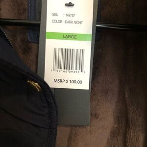 weatherproof dark blue and brown cozy lightweight vest adjustable size large