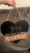 Heart-shaped sign with countdown feature. Black background with brown accent. Ideal for wedding decor.