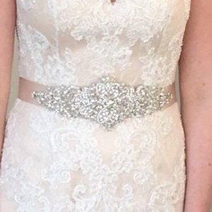 Artist-made, one-of-a-kind wedding dress belt. Fits any size with silk off-white band.