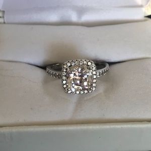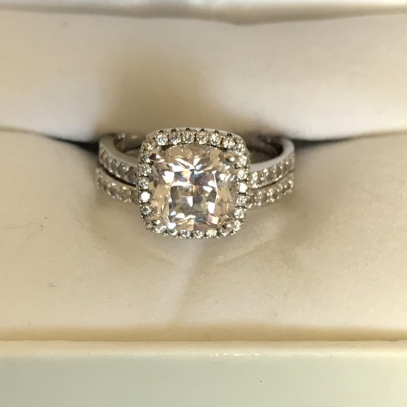 cushion cut center stone surrounded by stones. wedding set. box not included
