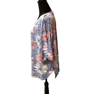 westbound Blue Pink White Large Floral Print Short Sleeve Top Size Large